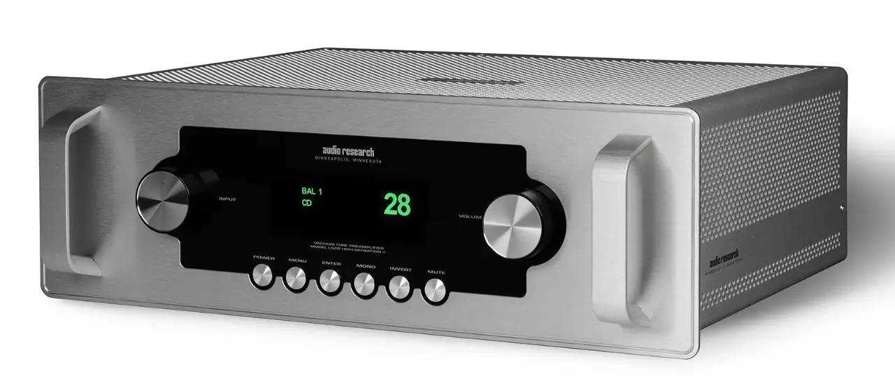 AudioResearch多年来都惯用KT88/6550输出管,新产品改用最新的KT150五极输出管代替,功率也提升了35%