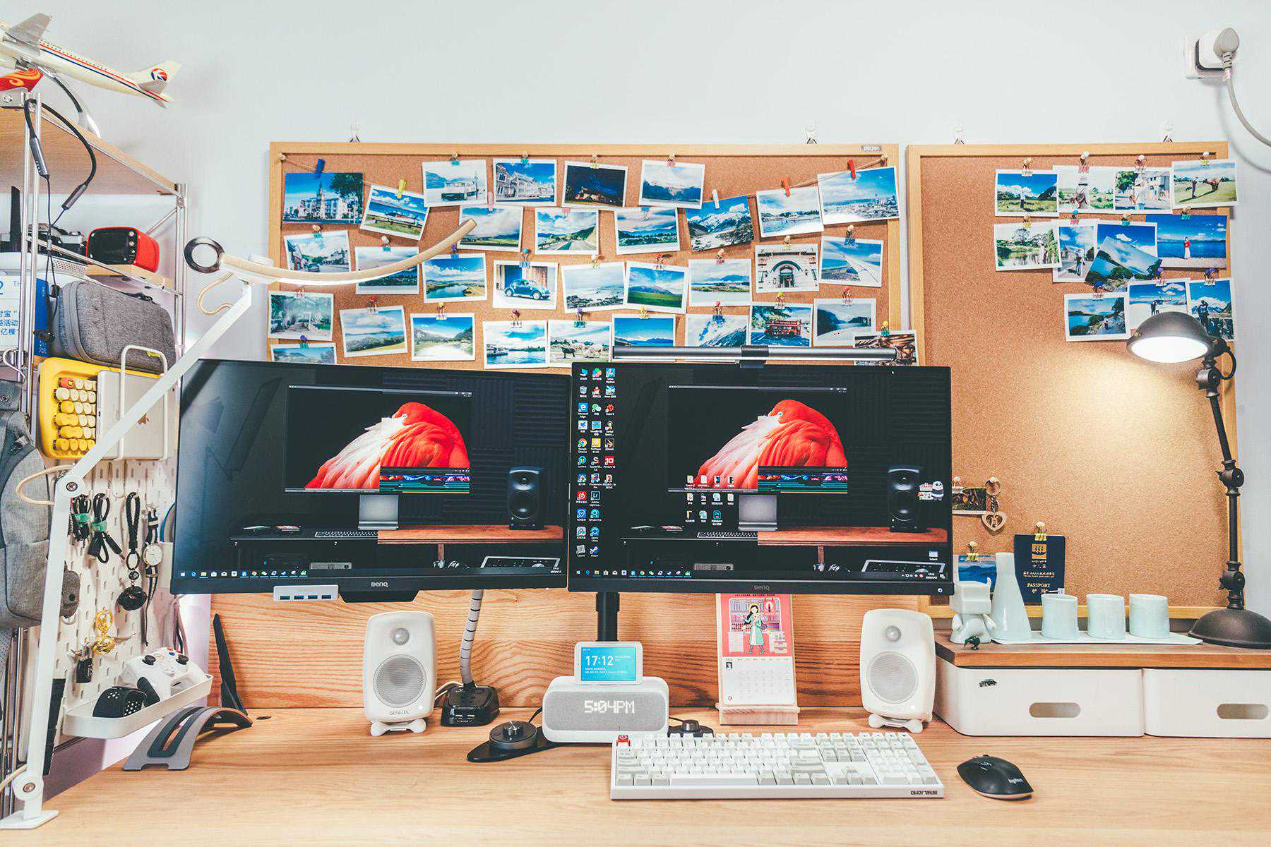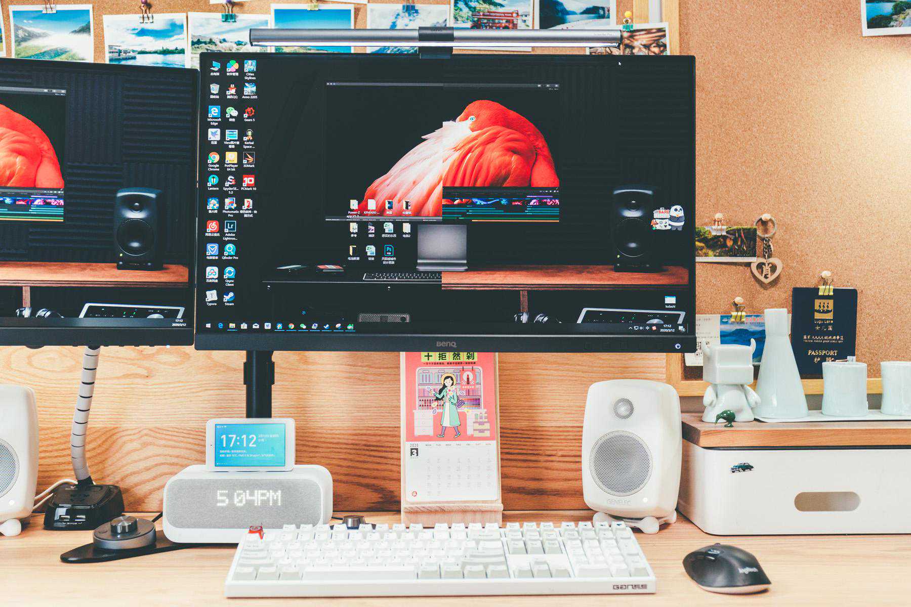 桌面彻底清爽了,只是抛弃原来明基SW270C优秀的底座有一些遗憾,还是希望明基能尽快出自己的双屏显示器支架。