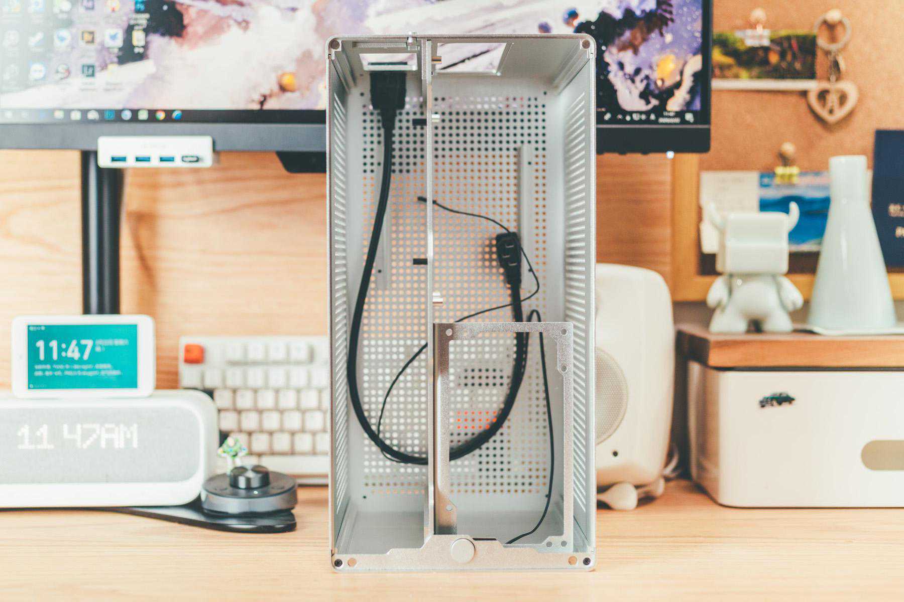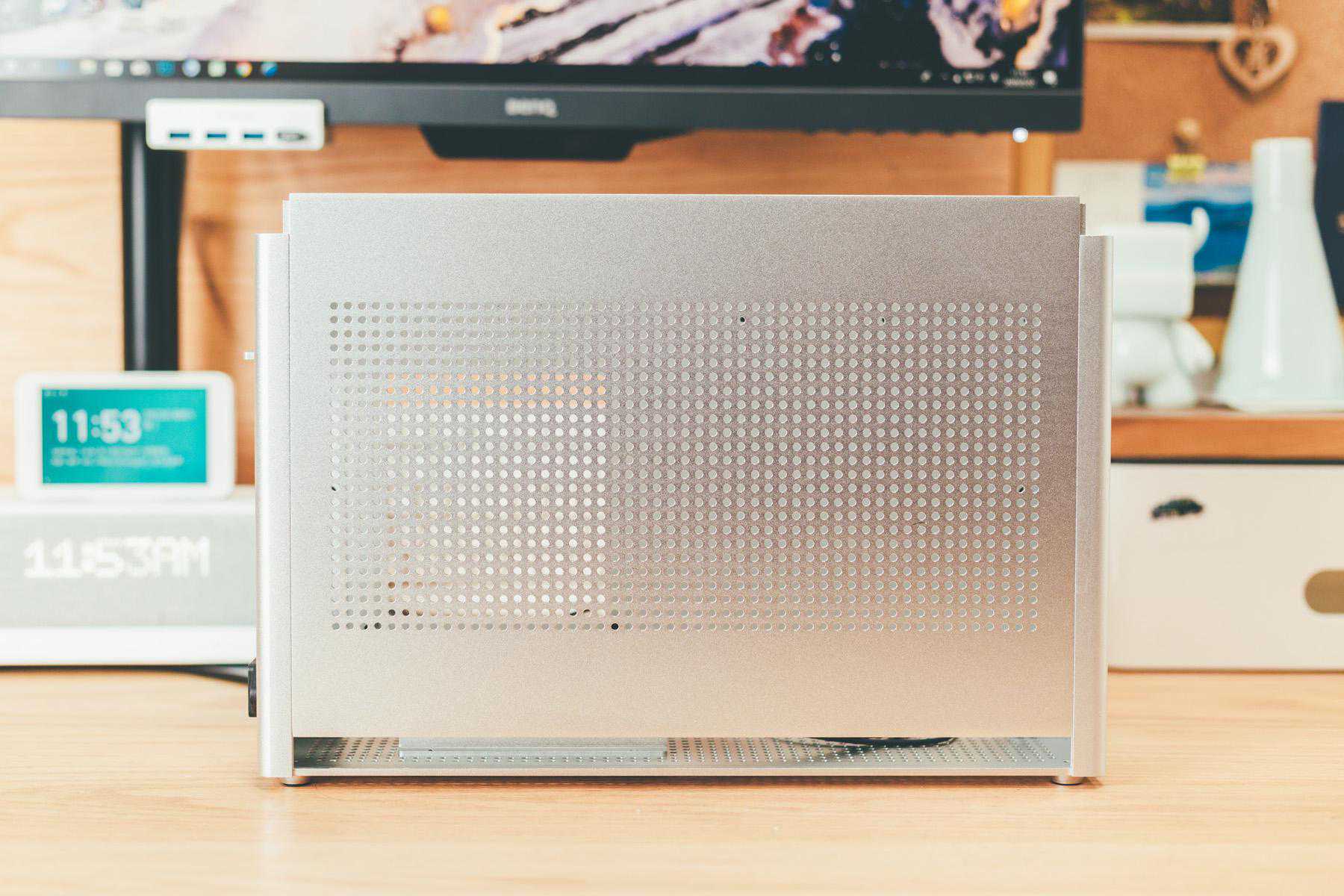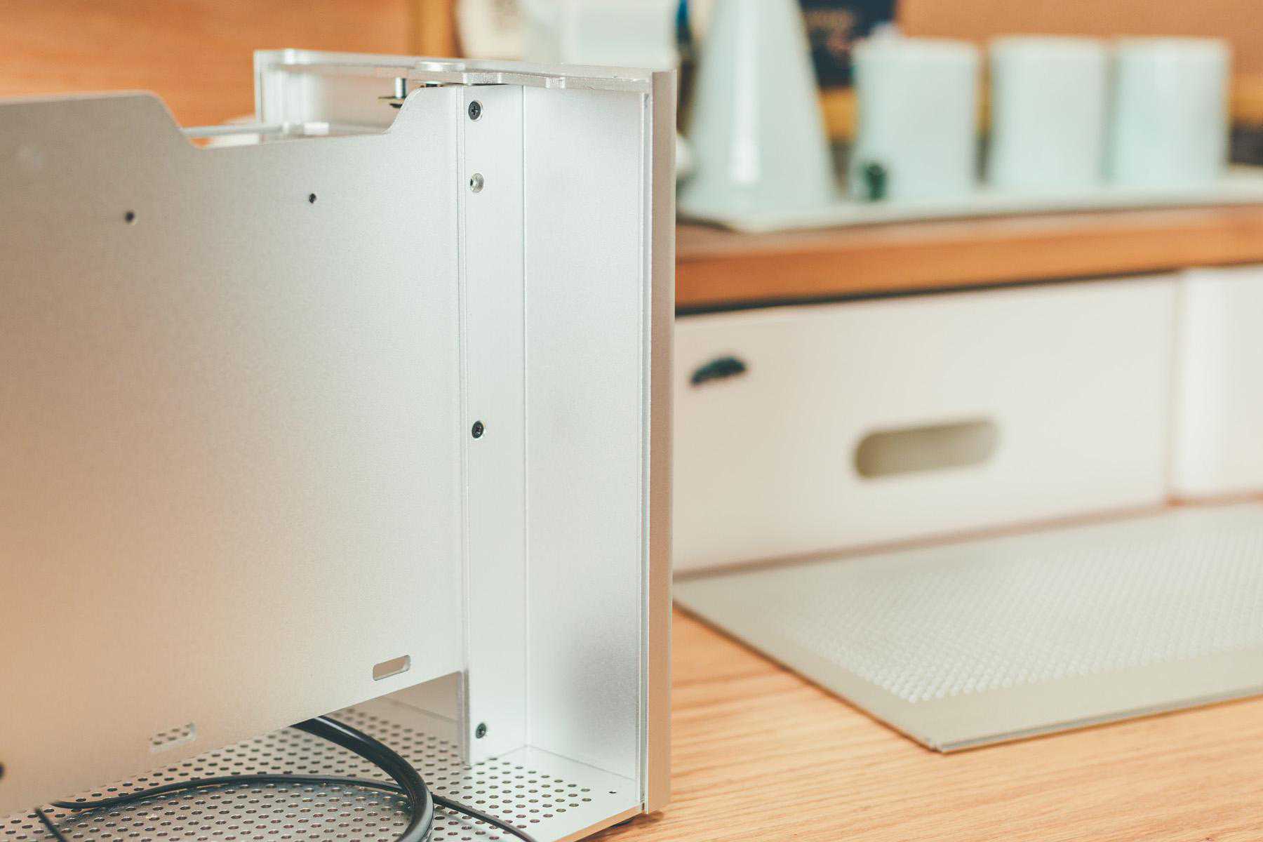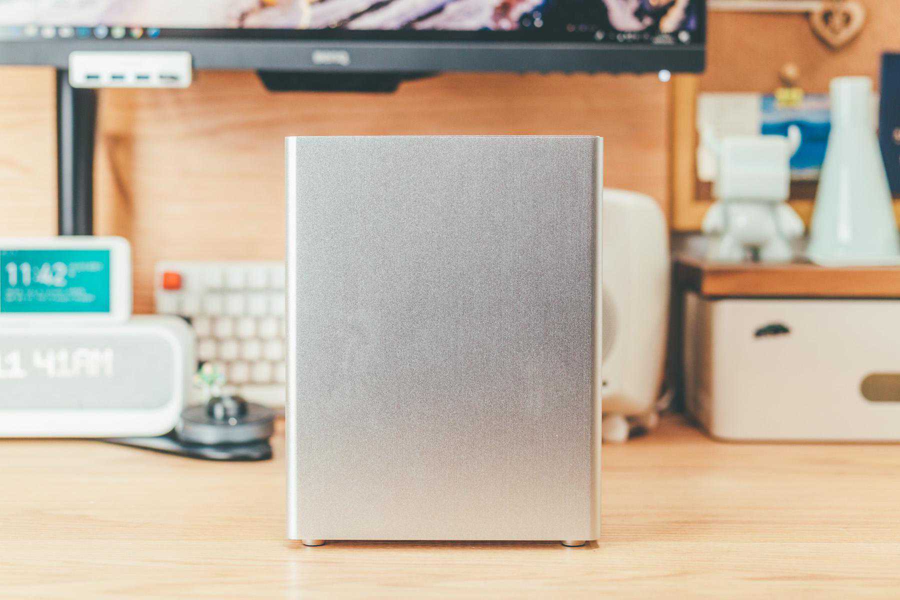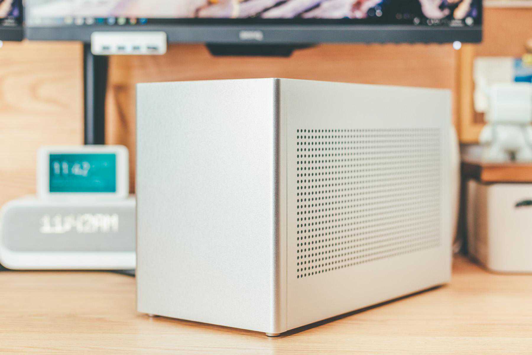 近期桌面大升级,除了因为原来机箱太高太窄的元素,原本机箱是全黑也不符合我的白色控缘由,白色机箱比较少,银色作为替代也可以,另外和我之前装ITX理由一致,我是根据空间来选择机箱的,蜂鸟ESE完美契合我预留的主机空间。