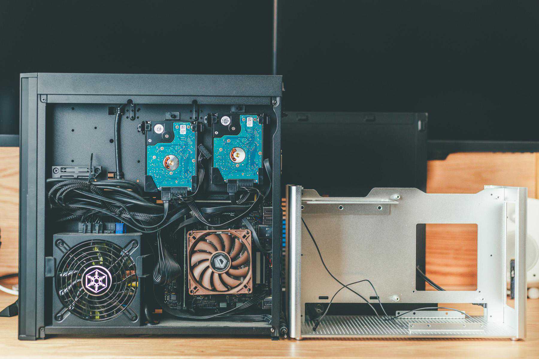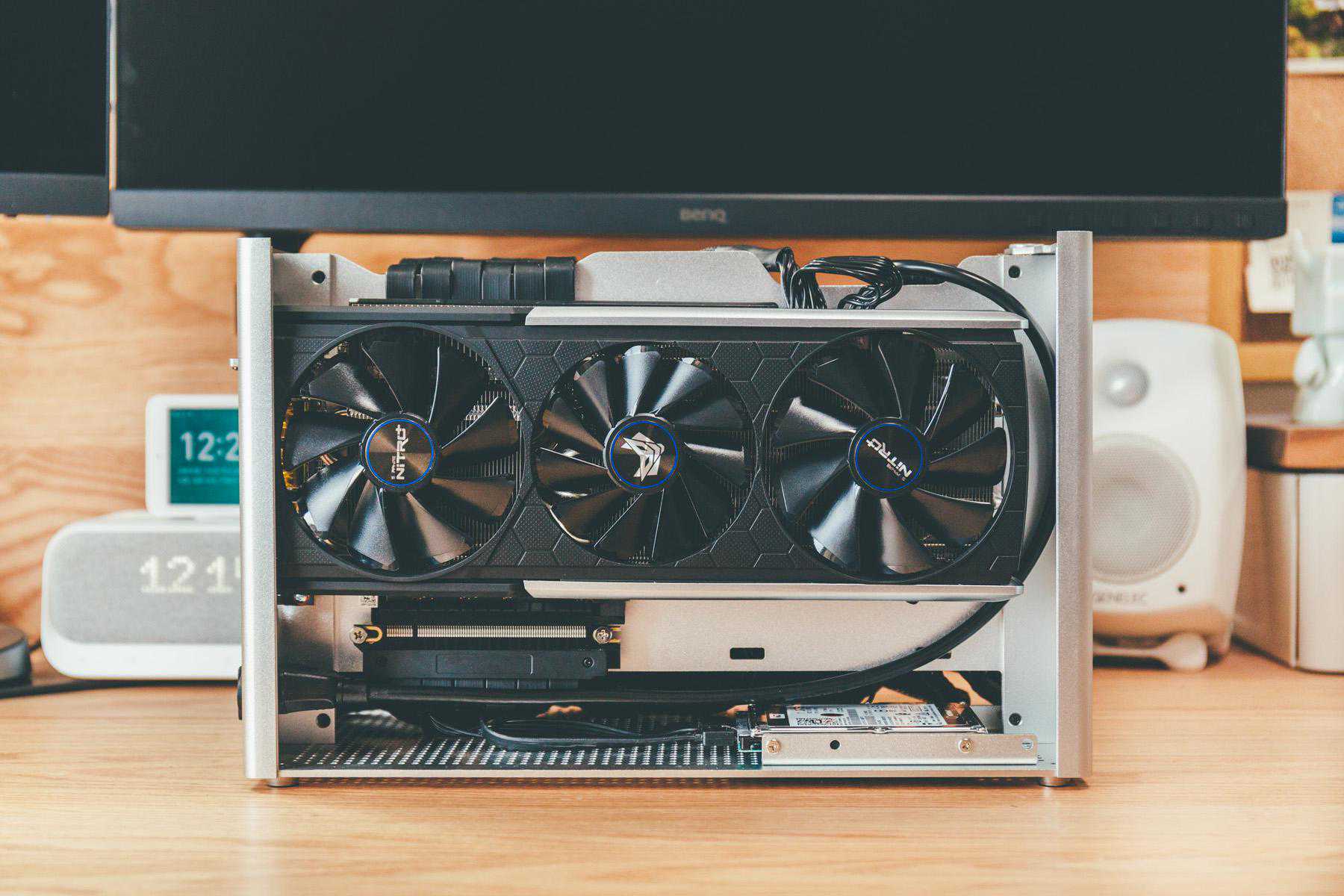 基本上空间被填的满满的,这也是ITX折腾的地方之一,你无法预料到哪一步会翻车,而且选购配件需要深思熟虑,比如我这台主机,如果不是转接显卡延长线,利民这款散热器根本用不了。