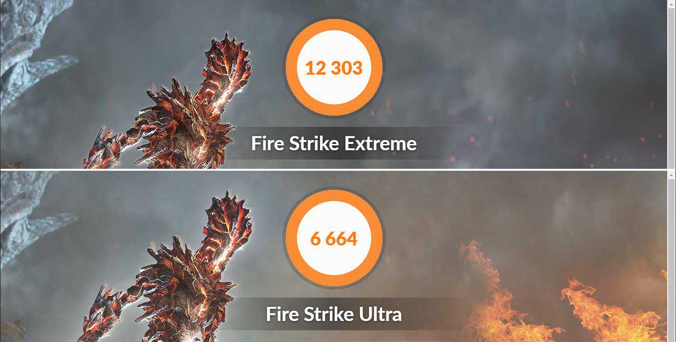 FileStrikeExtreme和Ultra成绩分别是12303和6664分。