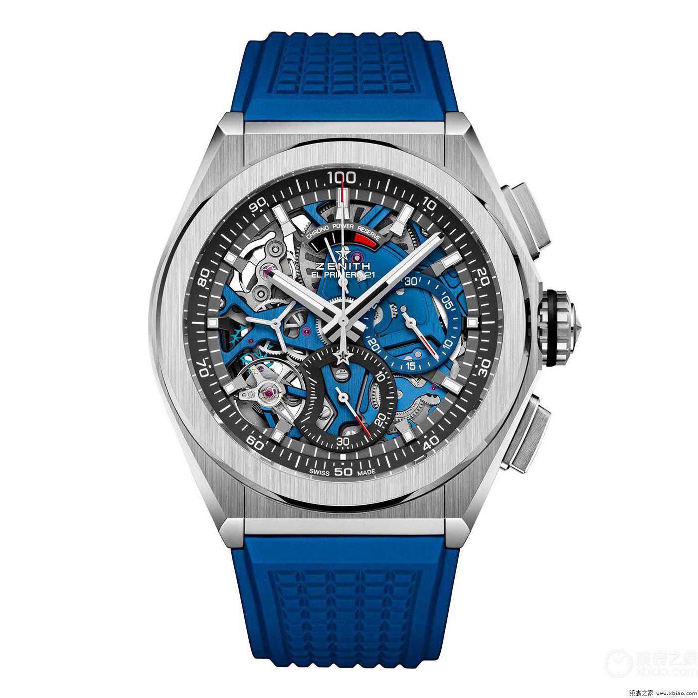 这里需要注意的是,在真力时DEFY系列中的百分之一秒计时表被命名为DEFYELPRIMERO21。DEFYELPRIMERO21是真力时全新设计的双摆轮、双擒纵百分之一秒计时机芯,只是借用了ELPRIMERO的名字,和1969年延续至今的ElPrimero机芯构造完全不同。但DEFYELPRIMERO21百分之一秒计时同样非常好玩。(图/文腕表之家炎弹平)
