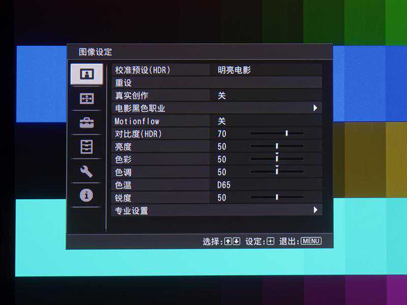 预设画面模式包括两个电影胶片模式、数码电影模式、原始模式以及明亮电影模式等,普通家庭观影情况下,建议选择明亮电影模式,兼顾了画面亮度与色彩还原两个方面