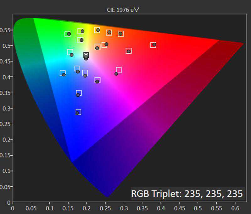 明亮电影(HDR)模式在Colorchecker色准测试中,平均误差值deltaEICTCP240仅为1.18,低于人眼可识别范围