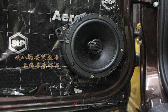 在使用俄罗斯STP隔音材料对汽车的门板做了双层的隔音处理之后,上海音豪的改装技师将汽车的前声场喇叭替换成了法国劲浪ps165V1两分频套装喇叭,它的中低音单元音盆采用了苯乙烯玻璃,这让其中低音部分饱满有力,灵敏性高。而高音部分使用了铝球凹体高音,从而让高频部分通透亮丽。后声场使用的雷贝琴同轴喇叭则与前声场喇叭形成了优势互补。为了增加音乐的真实性,上海音豪的改装技师还为汽车添加了一只雷贝琴ps10超低音炮。