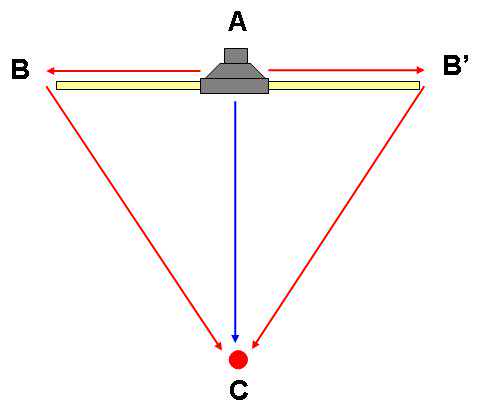 假设B跟B'与A跟C的相对距离是一样的,省略B'不看,那么听者听到的是由路径AC来的直接音加上由路径AB+BC而来的反相声音。