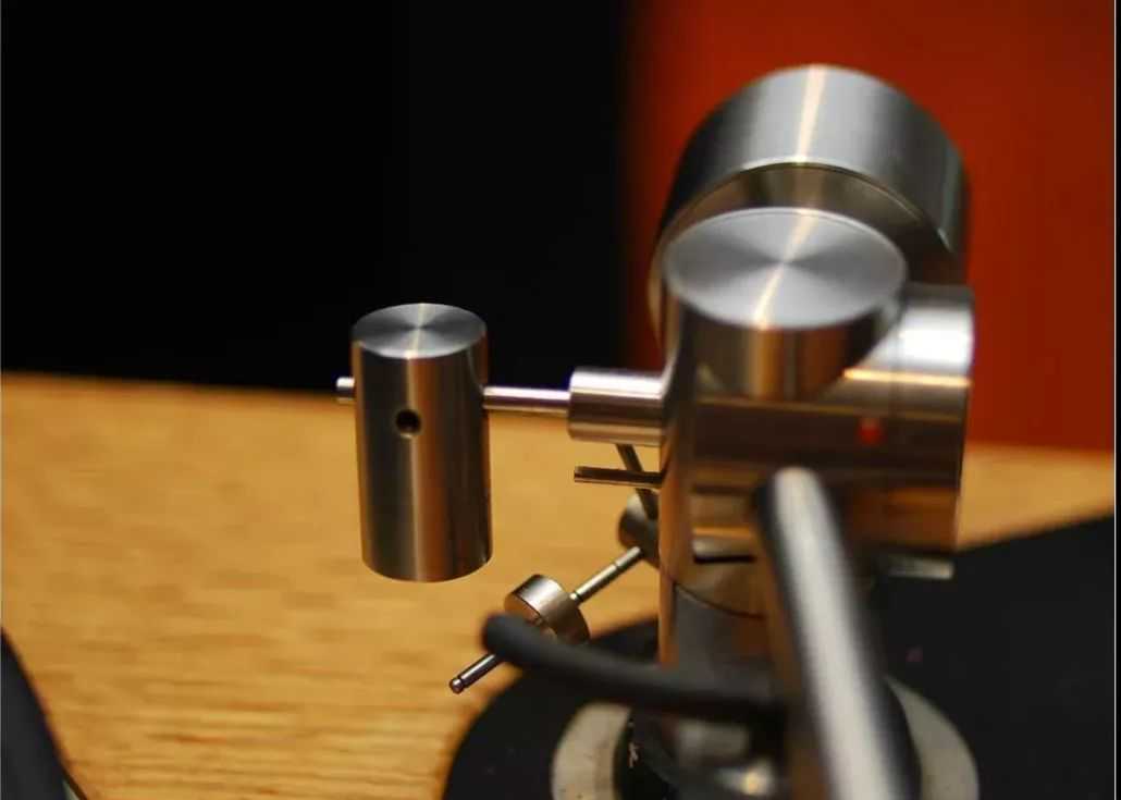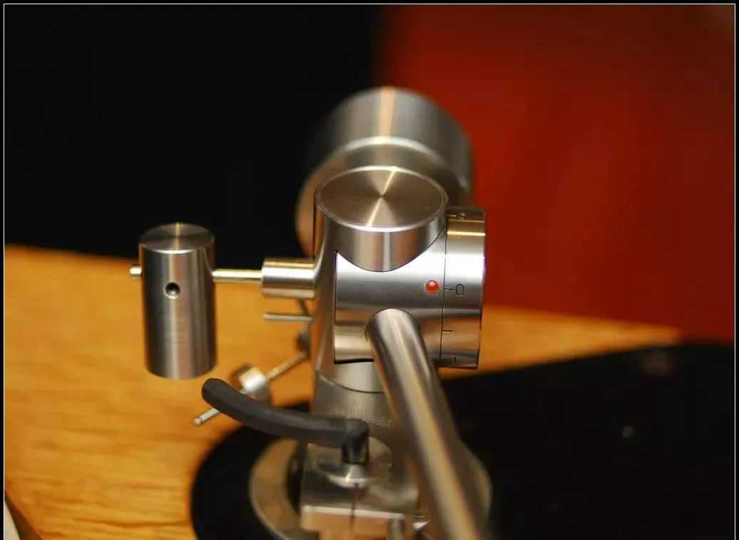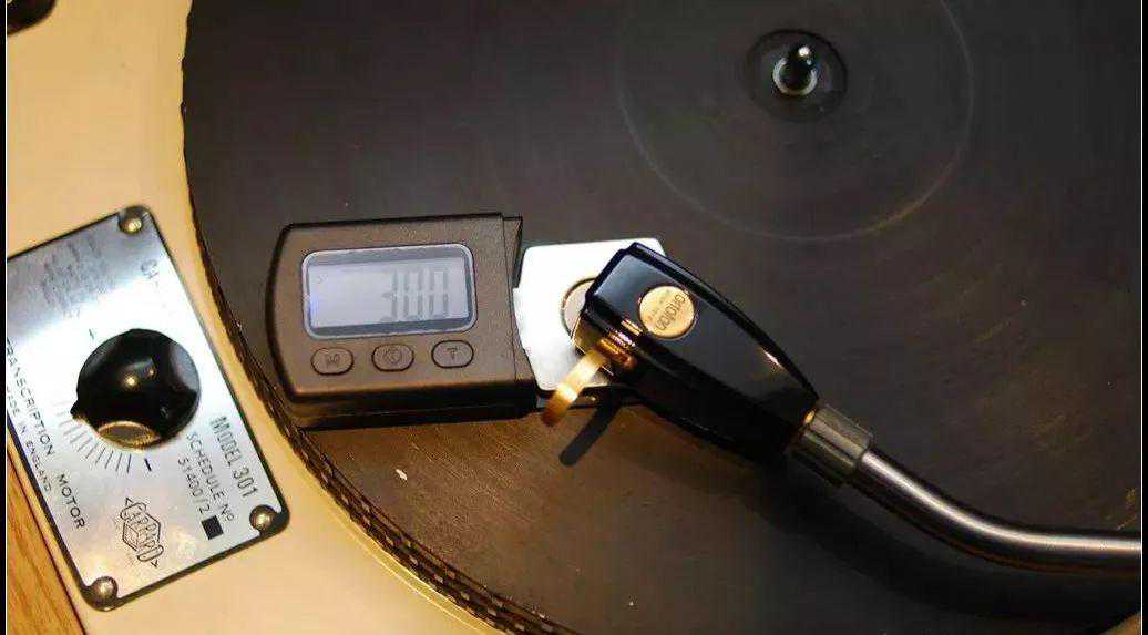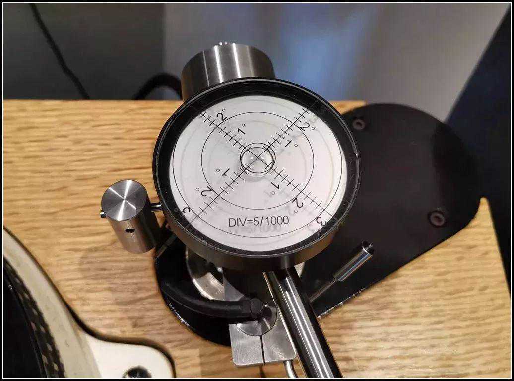 再调整尾坨的位置使得唱臂保持绝对水平,可以用VTA规尺量臂杆,这个水平调的越好,后面施加的针压越准: