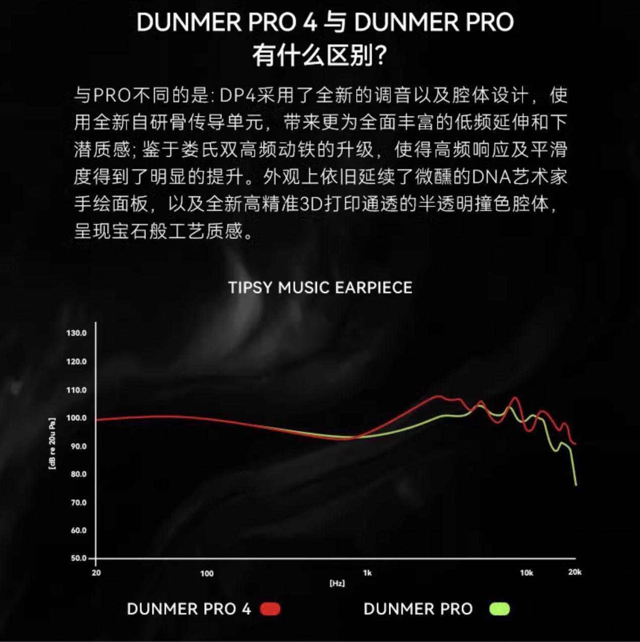 DUNMERPRO4巧妙的一处设计在于,这次新增加了自研10mm被动式黄铜弹片骨传导单元,这个单元作用有两个,借助本身发声特性,增强人体对于超过20KHz频率的感知,大家知道,人耳超过20KHz就无法感知了,而超高频可以通过身体其他部位感知,而骨传导和气传导两者足足相差了100kHz,而借助耳机本身专利架构,就能够获取到器乐本身的细节和定位,这就可以理解为,音响系统中身体接受音乐信息来感知定位,当然这颗被动骨传导的另一大作用,和音箱中被动单元是有异曲同工之处的,为了增强低频量感和氛围感,而在中频和高频上,也是采用了6.5mm镀钛球顶复合振膜,有一个细节值得注意,就是在架构上采用了双磁路双腔体设计,双磁路意思是既有内磁结构,又有外磁结构,但是需要注意的是,有可能内磁部分还是占据主体,采用双磁路的优势在于,一方面是增强磁通密度,另一方面就是增加灵敏度降低谐波失真,能带来瞬态和动态的增强,双腔体意义就是在前腔体和后腔体分别加入调音装置,比如类似遮罩的设计,目的就是为了控制住高频和低频,保证曲线的规整和声音的均衡性。