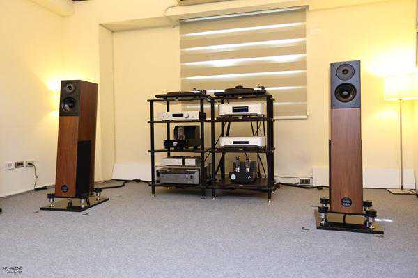 我们当天试听地点是方舟音响试听室,方舟音响是AudioPhysic在台北很重要的销售据点,实际展示了相当多款AudioPhysic音箱。方舟音响束先生对声音相当要求,替VirgoIII换上TrackAudio的金属角锥,并在下方垫上大理石,希望能有更好的声音表现。