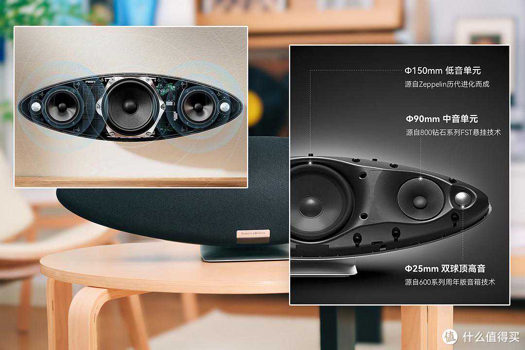 BW齐柏林飞艇这边则是五单元规格,总功率240W。双球顶高音分布两侧,然后是90mm中音单元*2,也是采用了800系列的FST悬挂技术,中央则是150mm的低音单元。