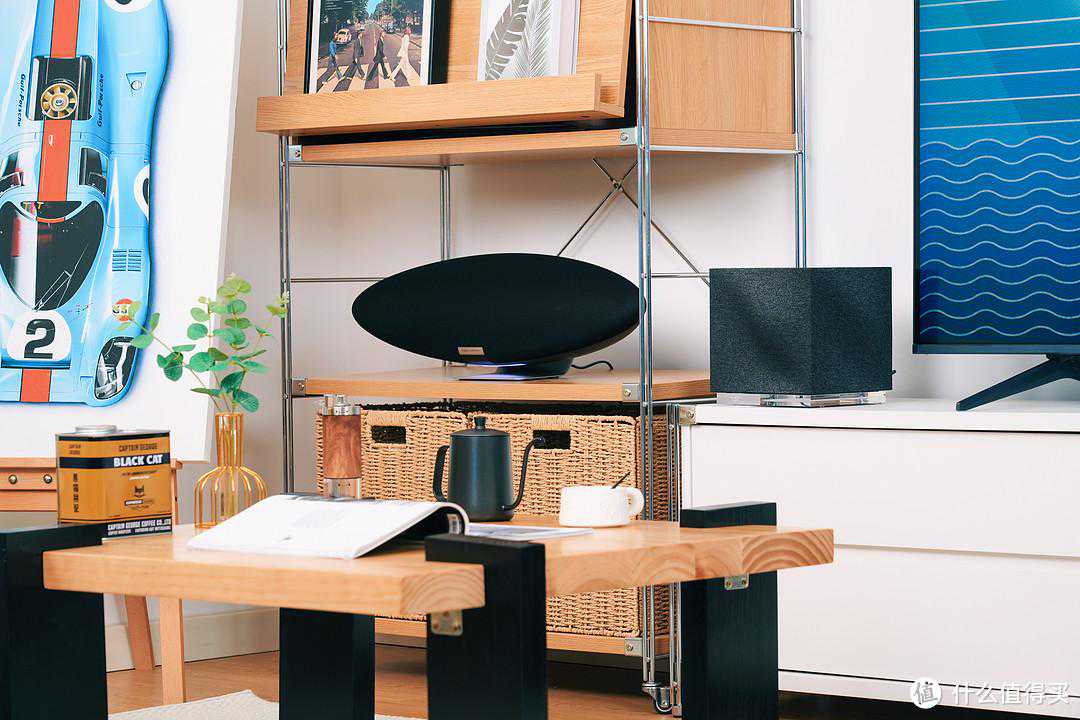 你可以随意摆放在架子、书柜甚至是电视柜上,也不影响旁边再放个唱机功放什么的。相对于300W的功率,这个占地面积可以说十分「娇小」了。