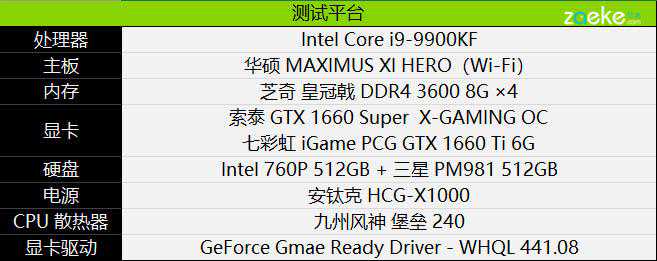 为了减少其他硬件对跑分的影响,本次测试使用i9-9900KF处理器,搭配华硕MaximusXIHero主板,以及DDR436008G四通道。