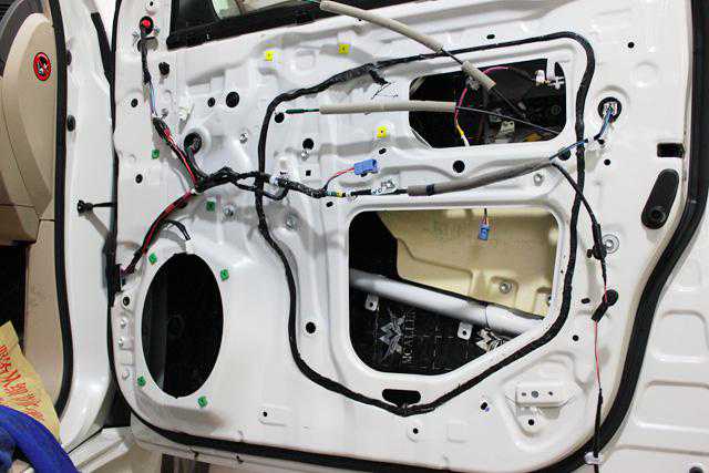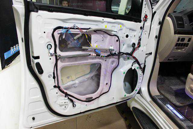 在升级音响前的第一步就是隔音了,喇叭只有在良好的播放环境下音质才会发挥的淋漓尽致。拆开门板可以看到跟很多原厂车门的一个共同现象,门板上没有任何的隔音措施,只有一层薄薄的防水膜,起不到任何的隔音效果。在这样的环境下怎么可能听到好的音乐。