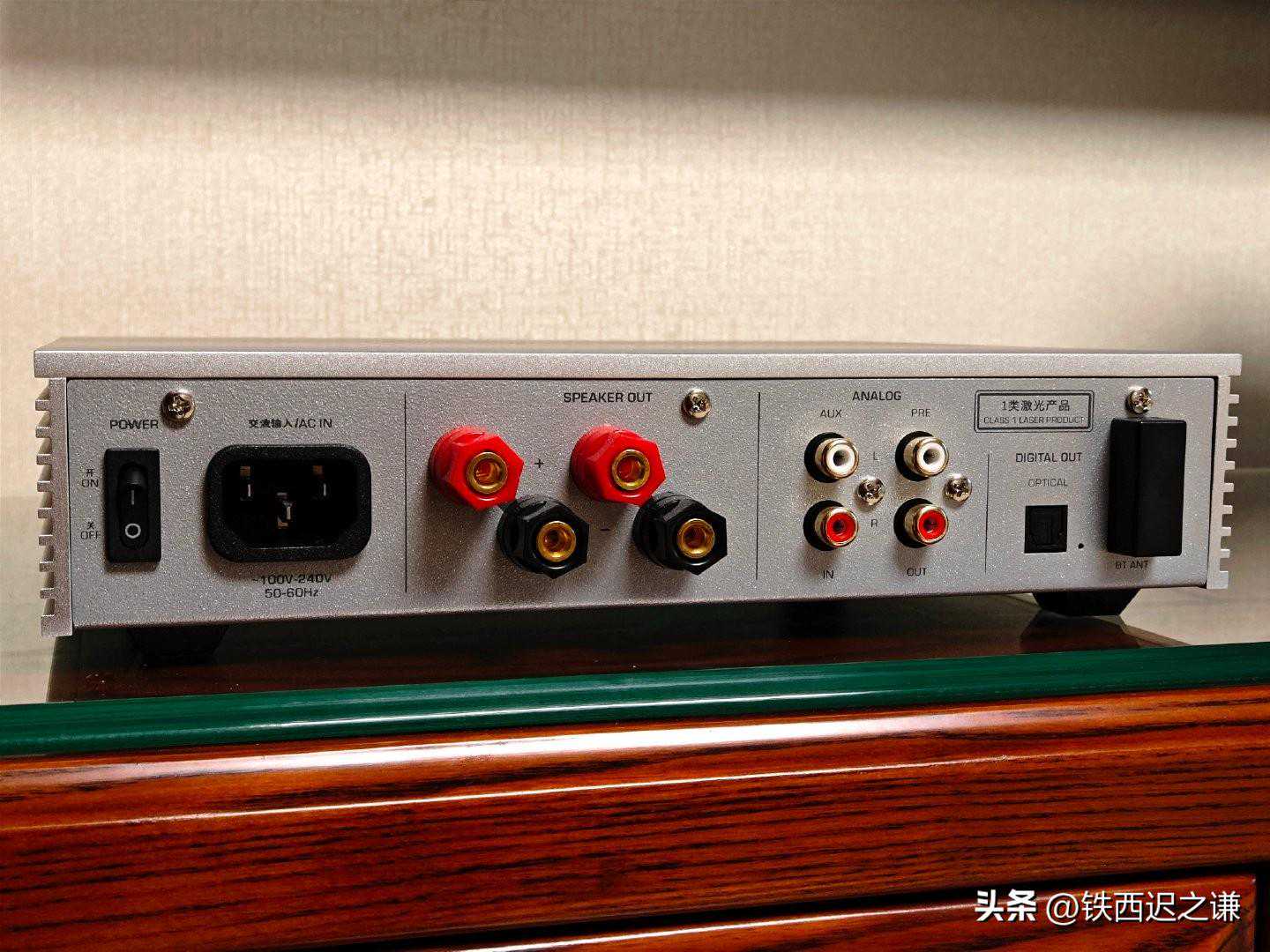 数字功放采用了丹麦ICEpower100AS2,在多个高品质电容的加持下,有高/低两档增益,最大能提供100W@4Ω的输出功率,可以轻松驱动无源音箱。