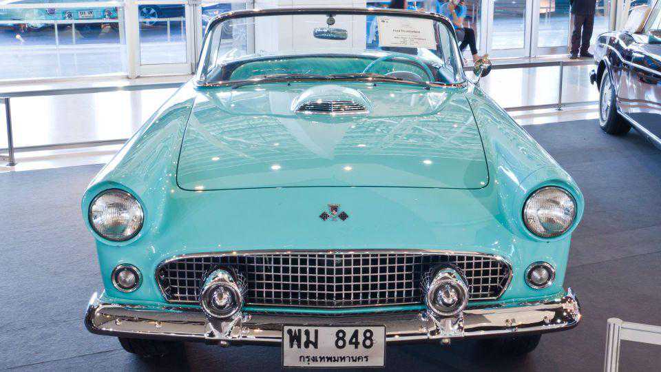 1955年美国制造的福特雷鸟经典车在泰国国际汽车博览会上展出
