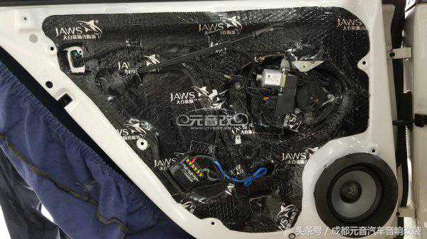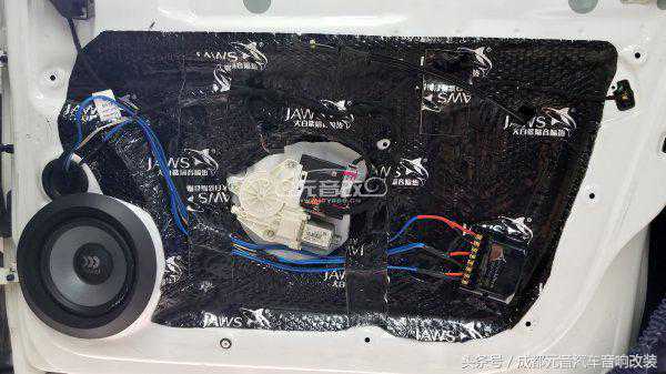 以上几张图片是前后门中低音单元的以及分频器跟隔音的施工,高音部分均安装在速腾原车自带的位置,安装好之后是看不见有动过的痕迹。如果你也想无损为速腾音响改装升级,同时也喜欢听声音清晰干净的歌曲该方案其实是一个不错的选择。方案中所使用到的器材均有现货,您可以到店试听或者加微信公众号“成都元音汽车音响”