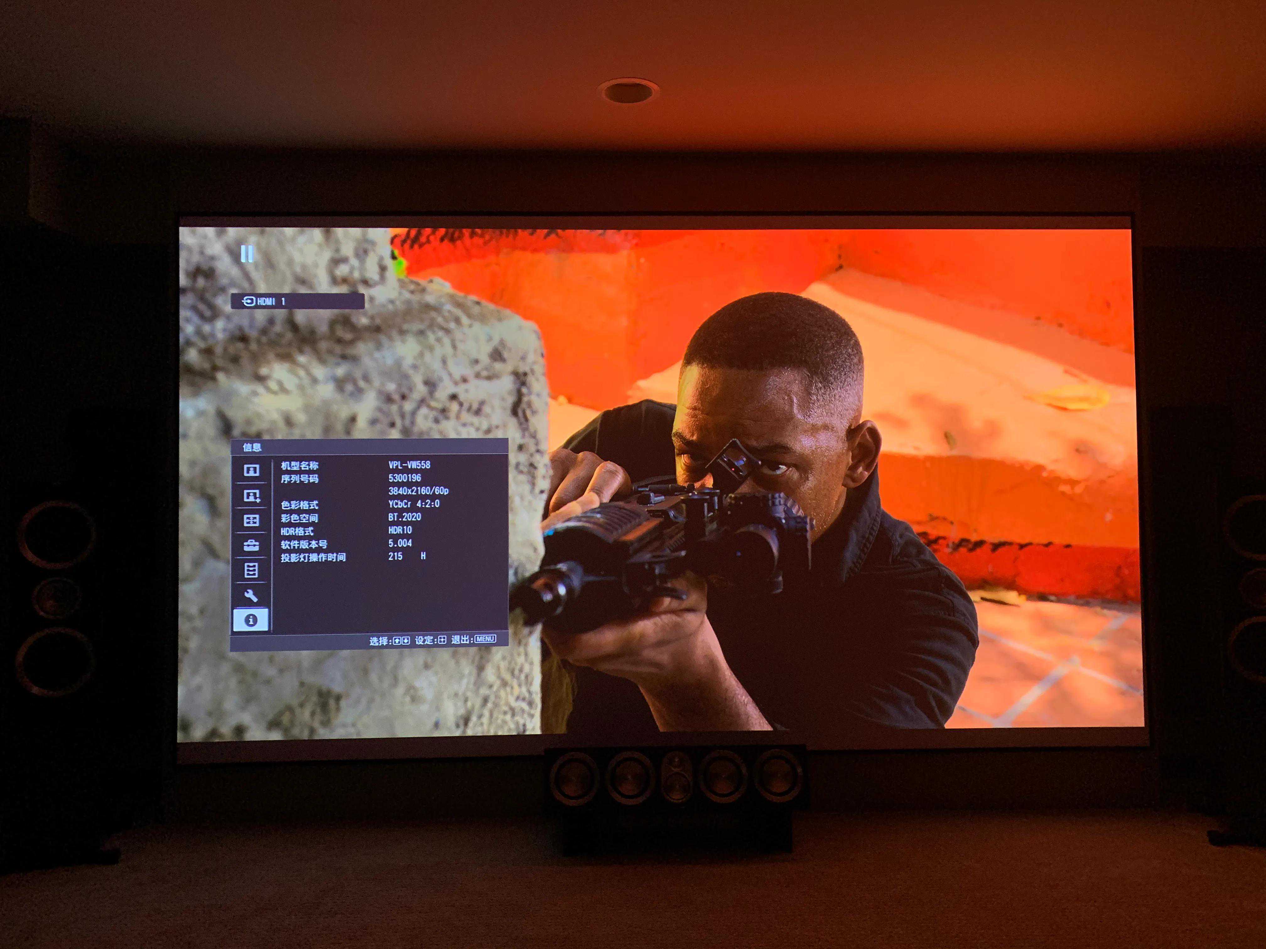 投影索尼558,投影幕亿立150寸,投出4k60帧无压力。