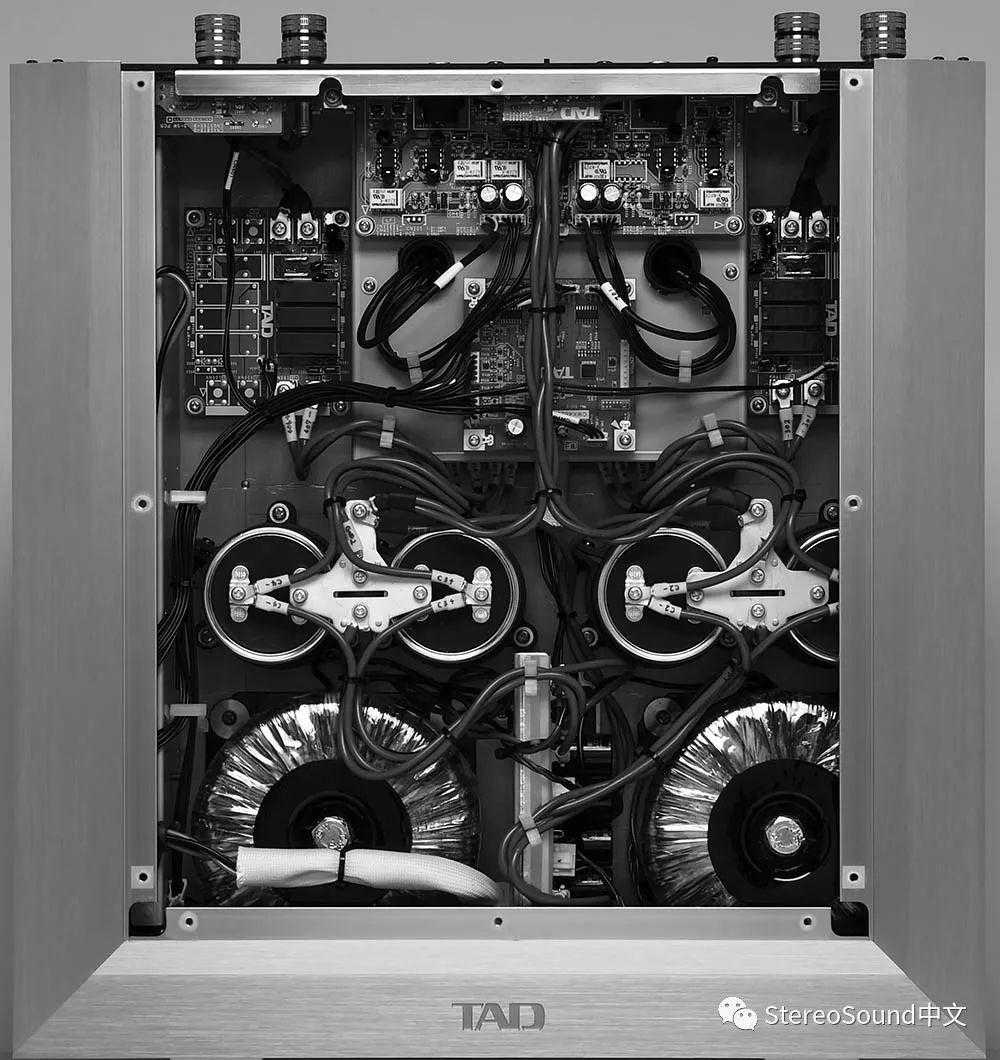 本机的特征是TAD所宣称的「追求3个对称性」的设计。这其实是继承和发展了在M2500MK2中投入的技术,为了对扬声器进行正确的驱动,从电路方式到构造面彻底的对称性追求非常引人注目。