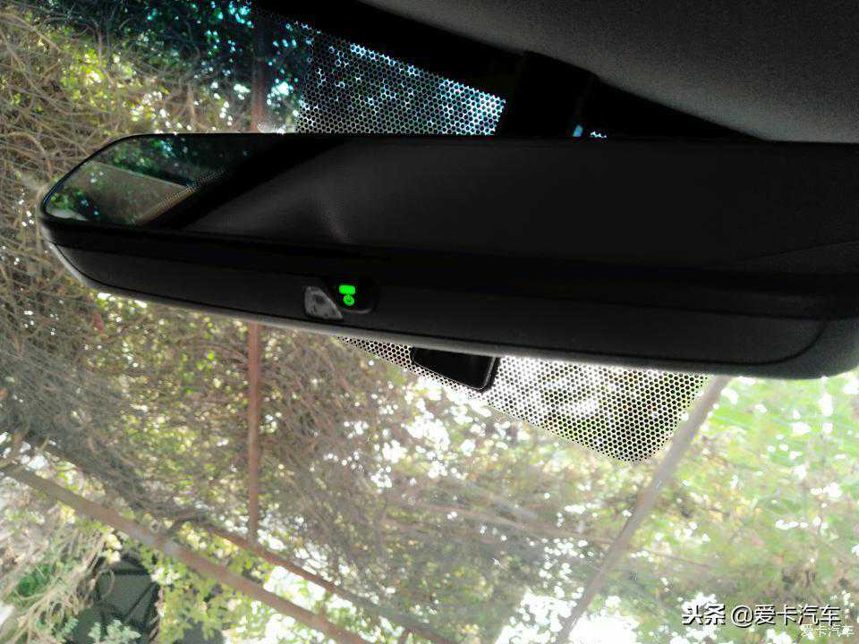 车内后视镜绿色防炫开关左边有一个小灯,白色那里,晚上会常亮,也算氛围灯吧