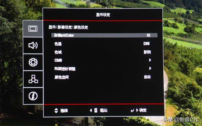 进入“颜色设置”菜单,可以看到BrilliantColor、色温、色域、CMS、RGB进阶调整、颜色空间六大部分,其中两段式的灰阶白平衡调整功能与6色色彩管理系统对于专业调校来讲是必不可少的
