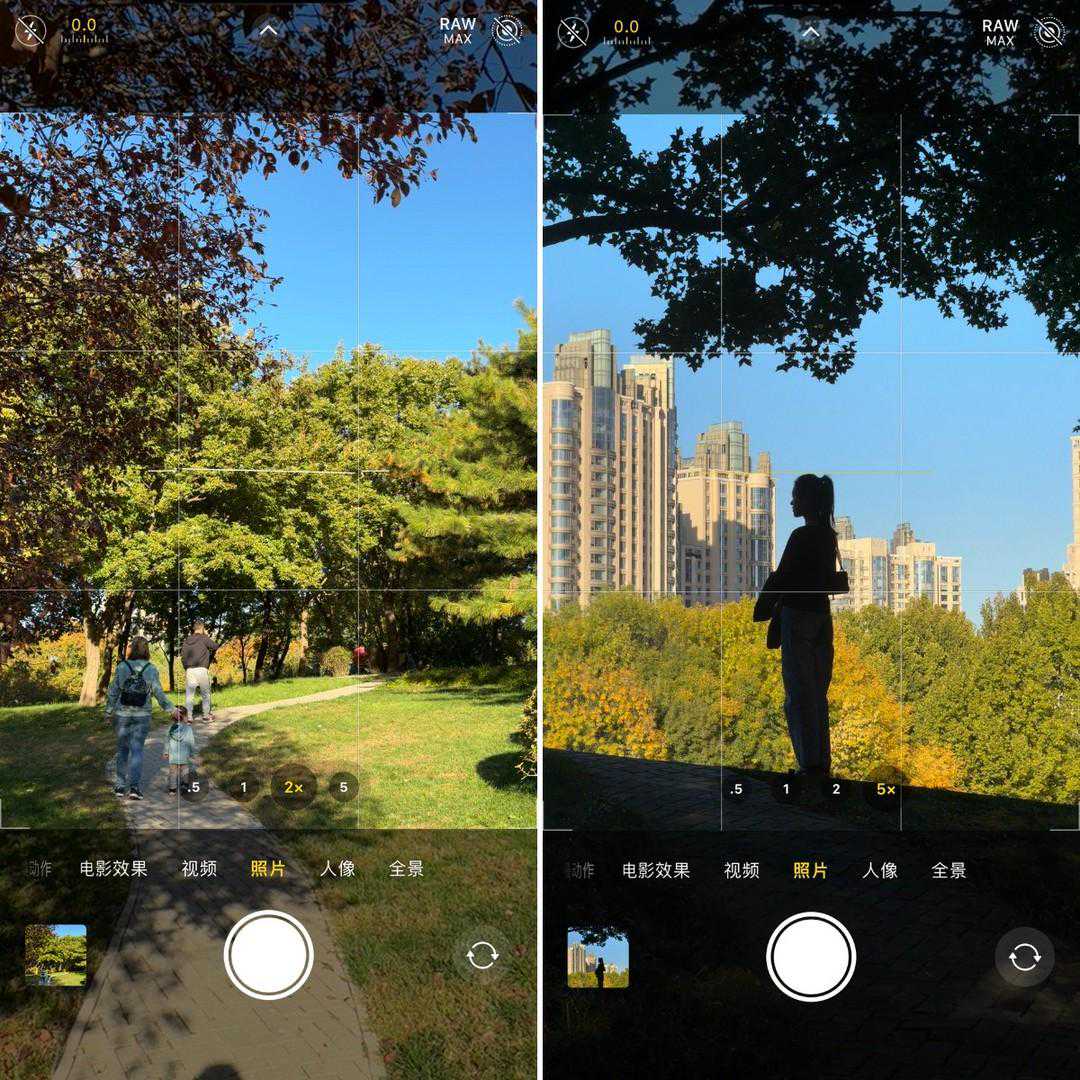 左:iPhone15ProMax2x视野;右:iPhone15ProMax5x视野