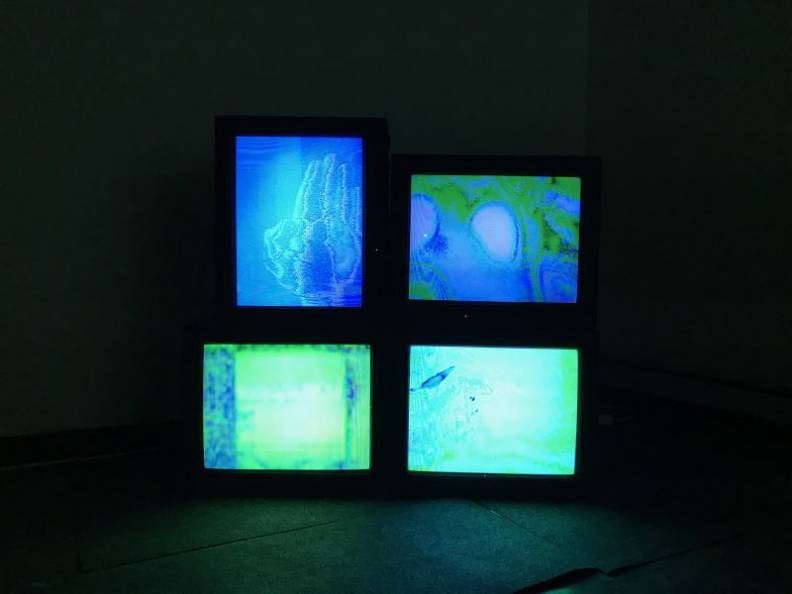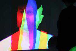 这是一部关于抑郁主题的个人作品。“文拉法辛”揭示了不稳定、脆弱的主题,展现出的电子图像被解码成红、绿、蓝三色的组合。三台投影仪分别展示的图像被重新整合成为一个图像。观展者可以在整个放映空间内走动,打断光线的投射,从而与图像进行交流互动。