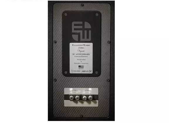 Viginti是EgglestonWorks首款采用槽形倒相孔的扬声器。Thompson说倒相孔让他们的设计团队可以做到“极高精确度”地固定低音调谐频率。它同时增强了低阶音符的“音高准确性”以及“紧密度”。箱体表现得像一个密闭的盒子,可以使调谐频率下潜到极低的30Hz,并且如此低的调谐频率使得群延迟可以在一个我们人耳基本无法感知相位错误的区域内移相。