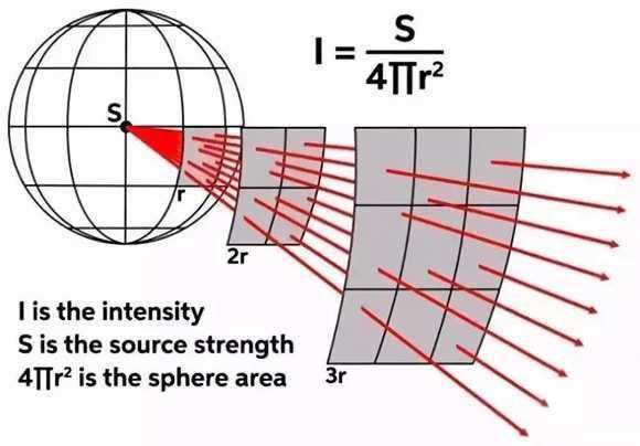 声学中反平方定律的内容是,声强度的大小和听音位置与声源之间距离呈平方反比。其结果是听音者距离点声源的距离每增加一倍,声压衰减6dB。这是我们通常情况下使用的扬声器的表现,虽然实际和理论会有很多细微差别。