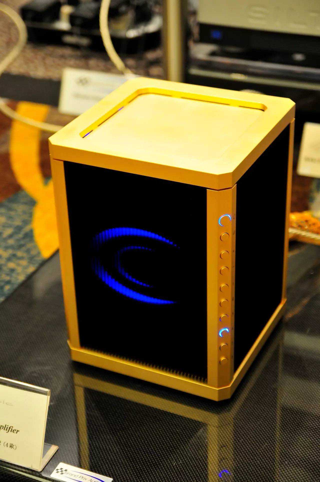 2-2荷兰CrystalCable晶彩去年展出CubeSystem合并功放样机,在这次香港视听展上正式上市,镀金的机身外框配合极具科技感的散热片,从内里投射出蓝色灯光显得相当有内涵。内置Traco度身设计的开关电源与Crystal研发的AB类功放线路,全平衡线路设计提供200W/8欧、700W/2欧的功率输出。