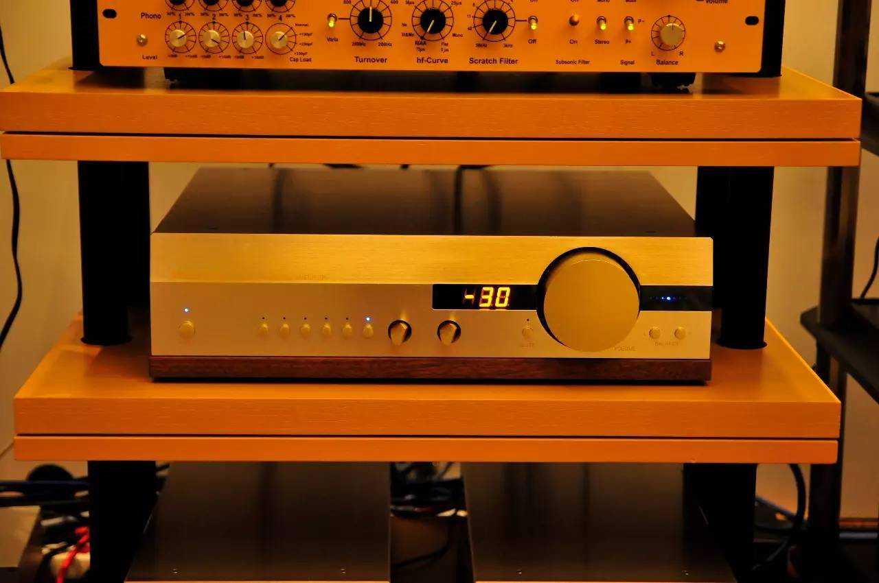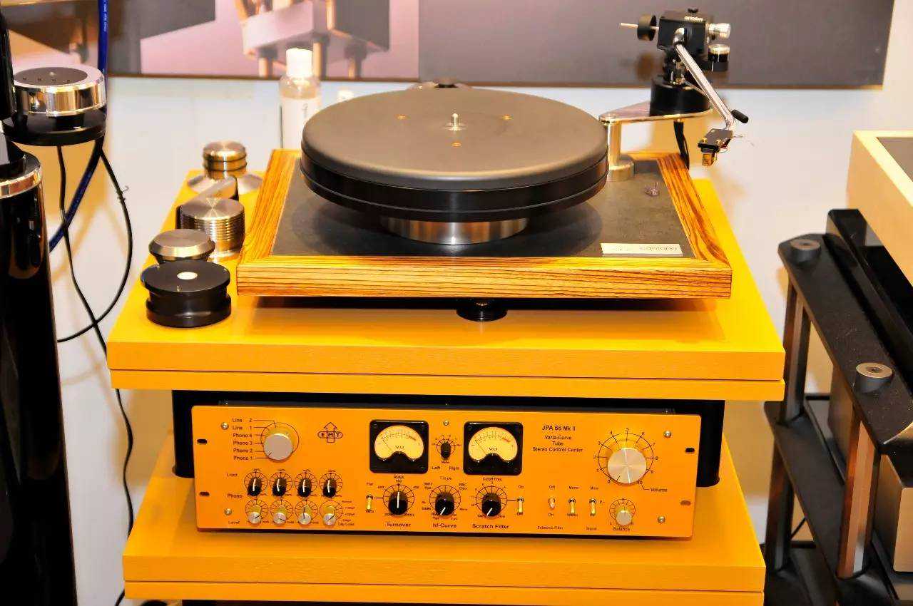 2-8EMT经典之作JPA66唱放前级推出了MK2金色75周年版本,最大输出大+28dBu/21V(RMS),频响10Hz-50kHz、MC唱头增益达73dB,MM为53dB,并具有±0.5dB可调设计。每组唱头输入匹配阻抗无级可调,输入电平也可单独调整。