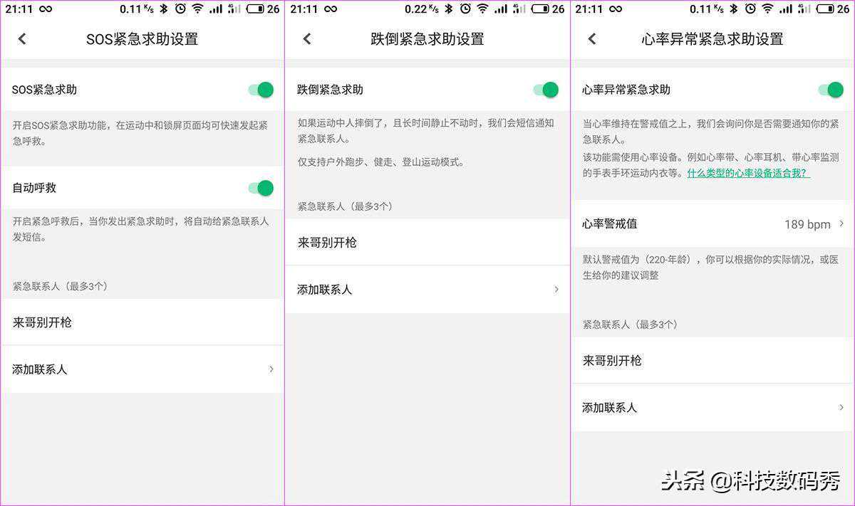 看到关于心率的设置了吗?我们甚至可以利用咕咚手表来充当我们的私人保镖,一旦咕咚手表S1监测到您的心率异常,就会自动启动SOS紧急求助(前提是你打开这些选项)。