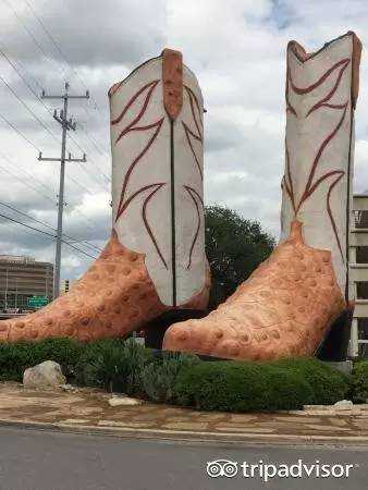 这双牛仔靴雕塑是美国德克萨斯州72岁的艺术家BobWade的作品。耗时三个月完成的雕塑,就树立在圣安东尼奥的NorthStarMall的门口。一定有人好奇,这双高10.74米的靴子并不能穿着走路呀,但对于作者来说这双靴子意义非凡,他甚至为它写了一首歌呢。
