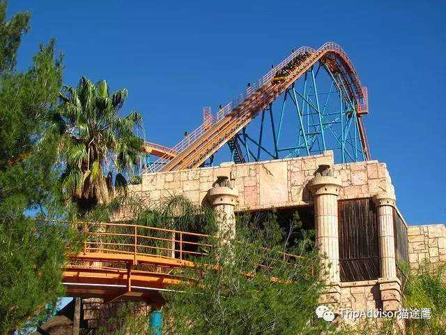 喜欢刺激的你一定要来美国伊利诺伊州的六旗游乐园(SixFlagsGreatAmerica)试试“歌利亚”过山车(Goliath),这是吉尼斯世界纪录里最大的木质过山车,其下降角度为85.13°,高度为54.86米,也是最陡的木制过山车。坐在最高时速可达115.7千米/小时的过山车上,一往下落,瞬间心脏都要停啦!