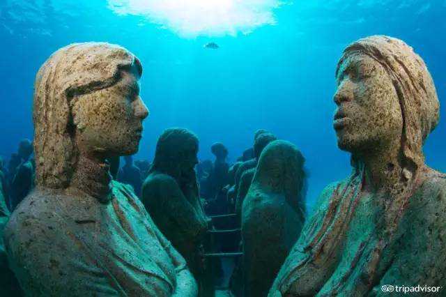 位于墨西哥女人岛(IsladeMujeres)水域的MusaMuseoSubacuaticodeArte,是全球最大的水下博物馆。由PH值为中性的混凝土制造成的450尊真人大小的雕像,散布在400平方米的海底,雕塑群有助于附近自然礁体的恢复,然而想要参观这座博物馆,只能通过潜水或者乘坐玻璃底游船前去观赏。
