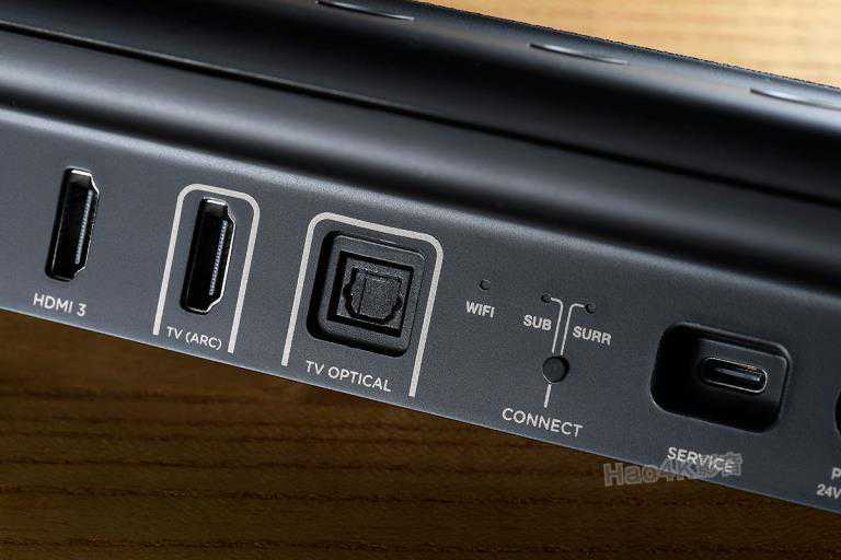3入1出HDMI支持ARC及4KHDRSoundbar配备了3入1出的接口,支持ARC功能,当电视播放Netflix、AppleTV+等流媒体影片的时候,就可以回传环绕声效到Soundbar输出,相当方便。图像方面则支持4KHDR,包括DolbyVision的输入及pass-through。Soundbar主机厚度只有63mm,相当薄身,除了放在电视柜不会阻挡到电视画面之外,也都可以挂墙安装,更加悭位。