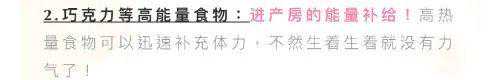 对于推荐待产包里放功能饮料这件事,公立及私立医院的多名产科医生全面反对,仅推荐巧克力。除了饮料成分之外,还有另外一个理由:万一不能顺产要转剖宫产,巧克力容积比饮料少,麻醉后胃里食物反流、误吸入气道的风险比较小。从不占胃容量的角度来看,巧克力能量密度简直是完胜功能饮料啊。