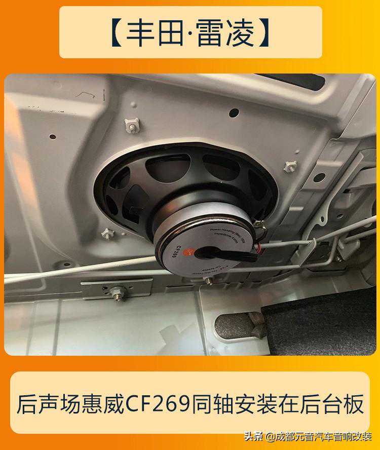 原车没有高音,声音浑浊单薄,听到的音乐律动一点感觉也没有,对说的就是丰田雷凌原车音响效果,通过增加高音单元以及更换前后中低音单元整体的聆听品质直线上升,获得的音乐音质品质直线上升,就像这辆丰田雷凌音响改装升级选用惠威的音响方案一样,具体的配置如下