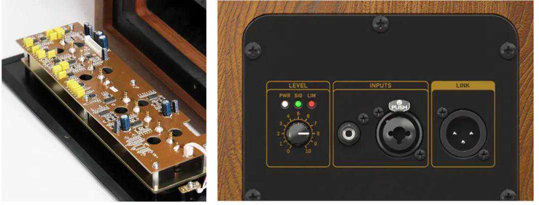 然而以大口径纸盆当号角,受限于先天物理条件,高音大约在15kHz以上就会快速衰减,SGM“超级金监听”系列标示的高频到30kHz,所以不需要像旧型号Ellipse系列一样加装超高音单元。当讯号从背板的XLR端子输入后,输入级采用一个高CMRR电路将共模噪声消除,透过Sensitivity旋钮可控制输入增益(范围为+4dBu—-10dBu)。输入级之后,声音讯号送进具有三段均衡功能的TrimControl电路,针对聆听空间的响应作补偿,低音部分无法调整,高频部分可以让“空气感”更强烈一点。