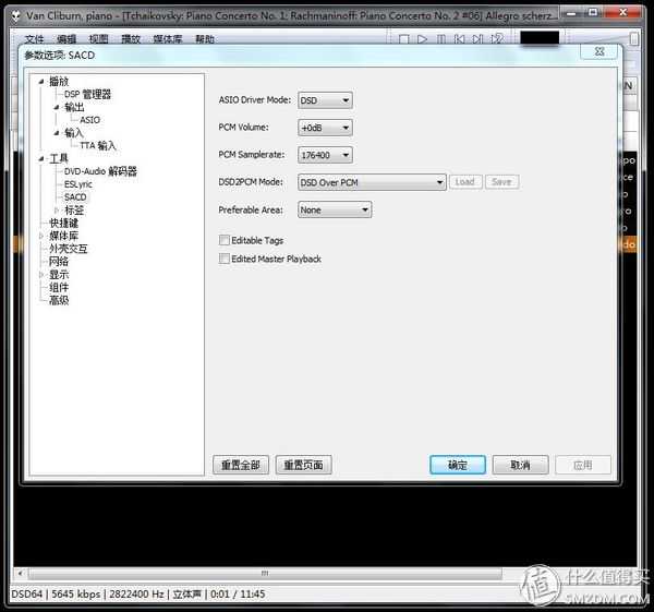 ▼然后打开sacd选项卡,按照途中进行设置,就是DSD2PCMmode选择DSDOverPCM,然后码率选择176400。