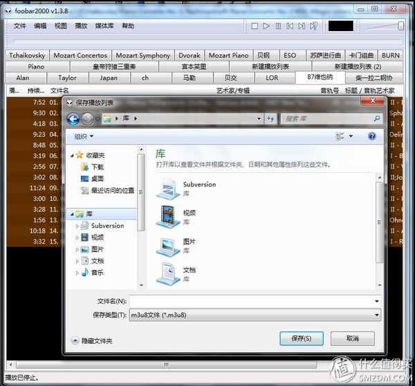▼用A15连接PC,然后把想建立播放列表的文件拖到一个播放列表里,另存播放列表到机身内存或者SD卡根目录下的/music/文件夹下,另存格式选m3u8文件就可以了。这种方法的缺点就是没有办法同时添加机身和sd卡的文件,因为A15连接PC的时候机身内存和SD卡只能二选一。