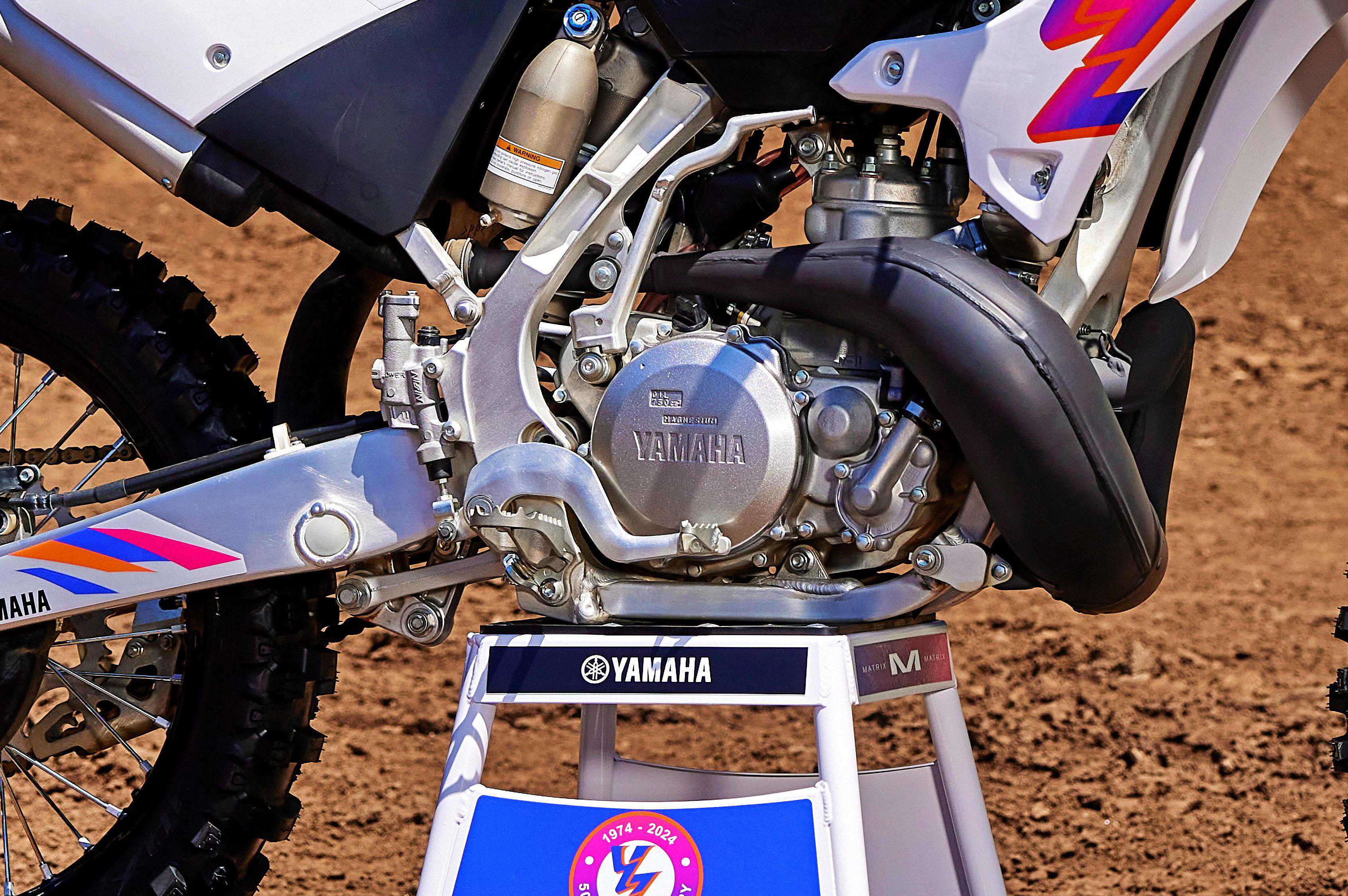 2024YZ250LC五十周年纪念版,是Yamaha用以纪念他们的市售越野赛车YZ车系诞生五十周年。Yamaha在1973年夺得了他们在世界越野锦标赛历史上的首次世界冠军:瑞典车手安德森(HakanAndersson)驾驶着工厂赛车YZM250夺得了250cc级别的胜利。在夺得了首次世界越野锦标赛的世界冠军之后,Yamaha在1974年正式向市场推出了市售型的越野赛车YZ系列,开启了他们对市售越野赛车市场的大进军。