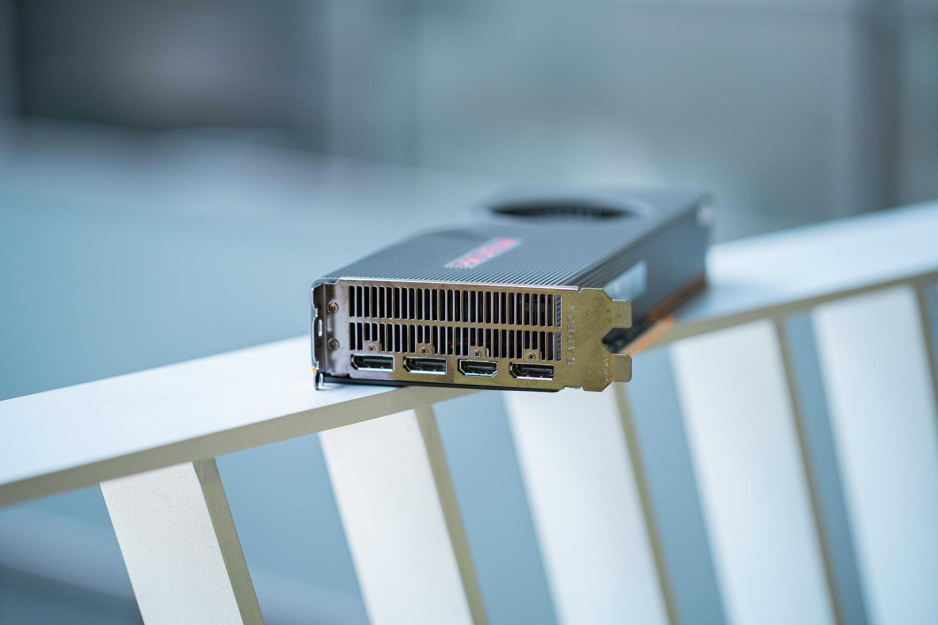 这块公版5700XT带有一个全金属背板,采用了6+8pin的外接供电,拥有4个输出接口——3个接口和一个接口(都支持4K),没有USBType-C接口和DVI-D接口。