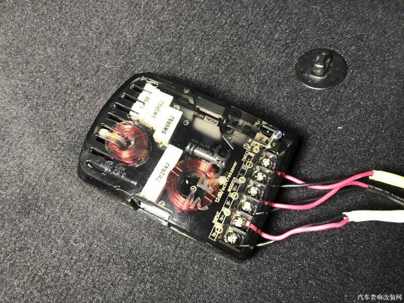 劲浪165A-GL二分频分频器接线效果,主要作用为套装喇叭的高中音实现频率分配,使高音发出高频,中低音发出中低频,这样的声音层次感、清晰感、声音细腻程度更加完美