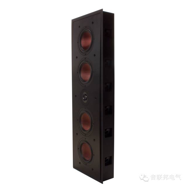 从官方的介绍里面看,这是一个赤裸裸的入墙前三扬声器,正面板上下面各两个6.5英寸单元夹着一只1英寸的高音单元,经典的夹心设计。而且用色方面很用心,6.5英寸的单元是碳纤维振盆材质的,一般的碳纤维都是黑色的,而Truaudio却弄成了红色,陪着黑色的铝合金拉丝面板,质感和逼格瞬间提高!