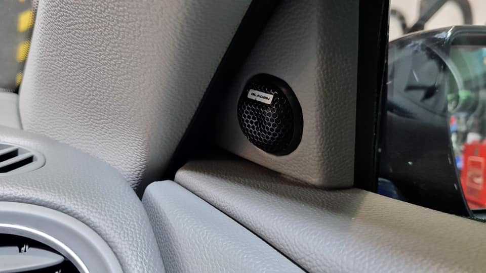 我们在车门安装了GLADEN低音扬声器,后视三角帆中的高音扬声器和仪表盘下方的有源超低音扬声器,所有这些均采用Gladen品牌。