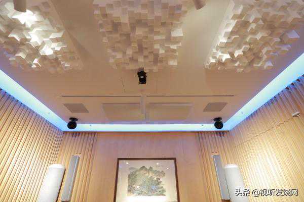 后环绕与天空声道,就搭配丹麦DaliPhantom嵌壁式音箱,最不占空间,同时让音箱配线隐身在天花板里面。