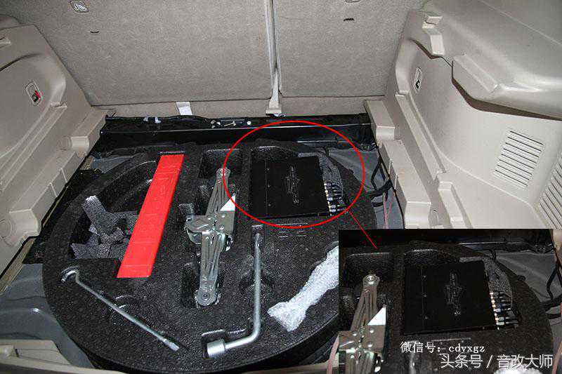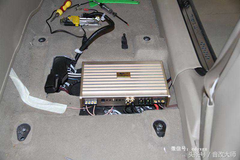 此时正在进行调音,因为dsp安装在下方备胎处,所以暂时没有将后面盖好