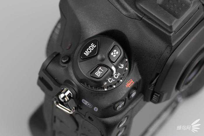 从尼康D5开始,尼康将ISO按键从机身左肩移至快门后方,让常用的ISO调节操作更为顺手。而右键依然是我们熟悉的经典“三叶草”按键布局模式拨盘,包括Mode拍摄模式切换,BKT包围曝光和测光模式选择。底部转盘则可以控制高低速连拍模式、静音拍摄、倒计时拍摄等功能。