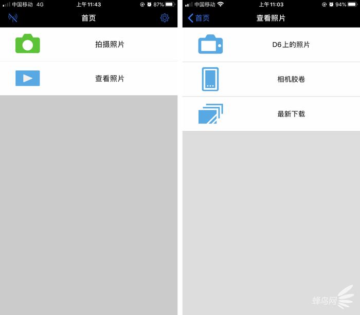 实时取景拍摄(左)和照片回放(右)界面