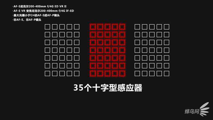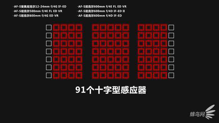 尼康D6作为体育级的旗舰机型,因此在对焦系统必然有着先天优势。相比较于上一代产品,尼康D6拥有更加可靠的自动对焦系统,并且为自家的自动对焦性能设定了新的基准。105个可选的十字型对焦点以约1.6倍的高密度覆盖自动对焦范围,即使主体杂乱无章地移动及光线不足的情况下,也能提供更可靠的性能,用户无需调整构图即可将对焦点对准所需的地方。在这里需要说明的是,尼康D6的105个可选的十字型对焦点并不能支持全部尼克尔镜头,具体的将在下面的十字对焦表格中展示。